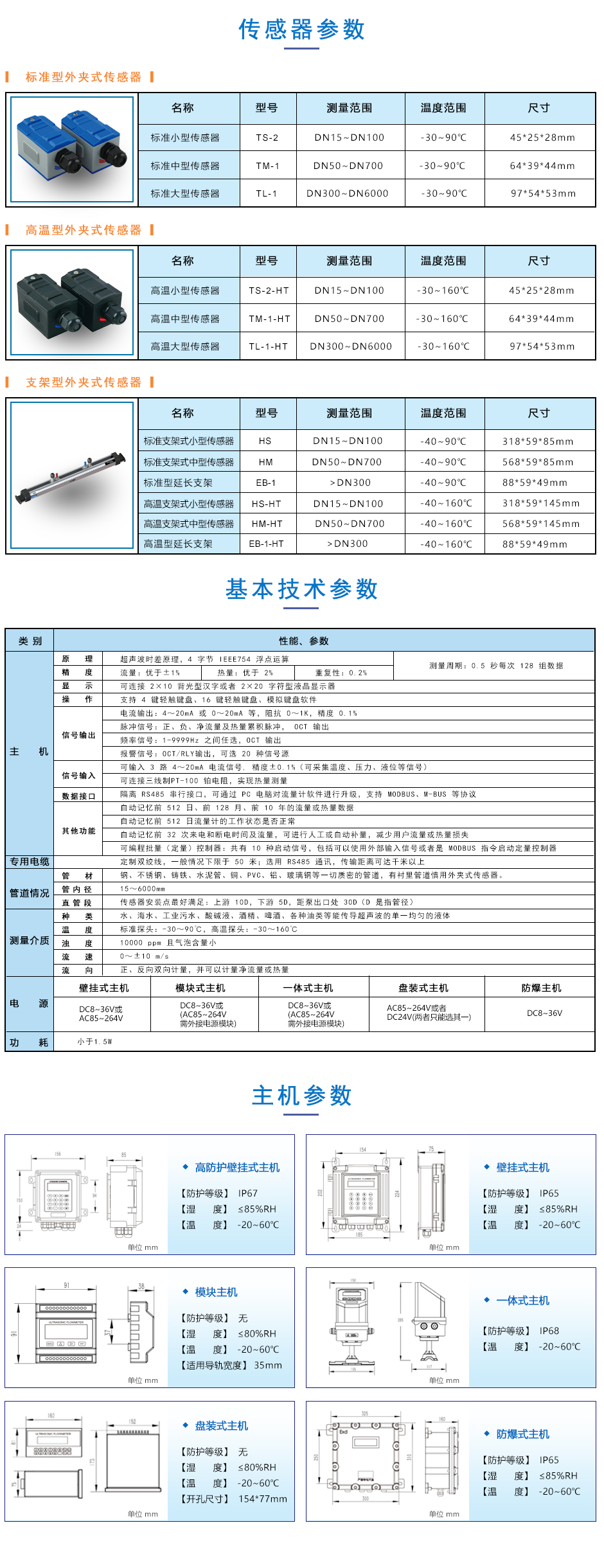 外夾式超聲波流量計由主機(jī)和外夾式傳感器組成。