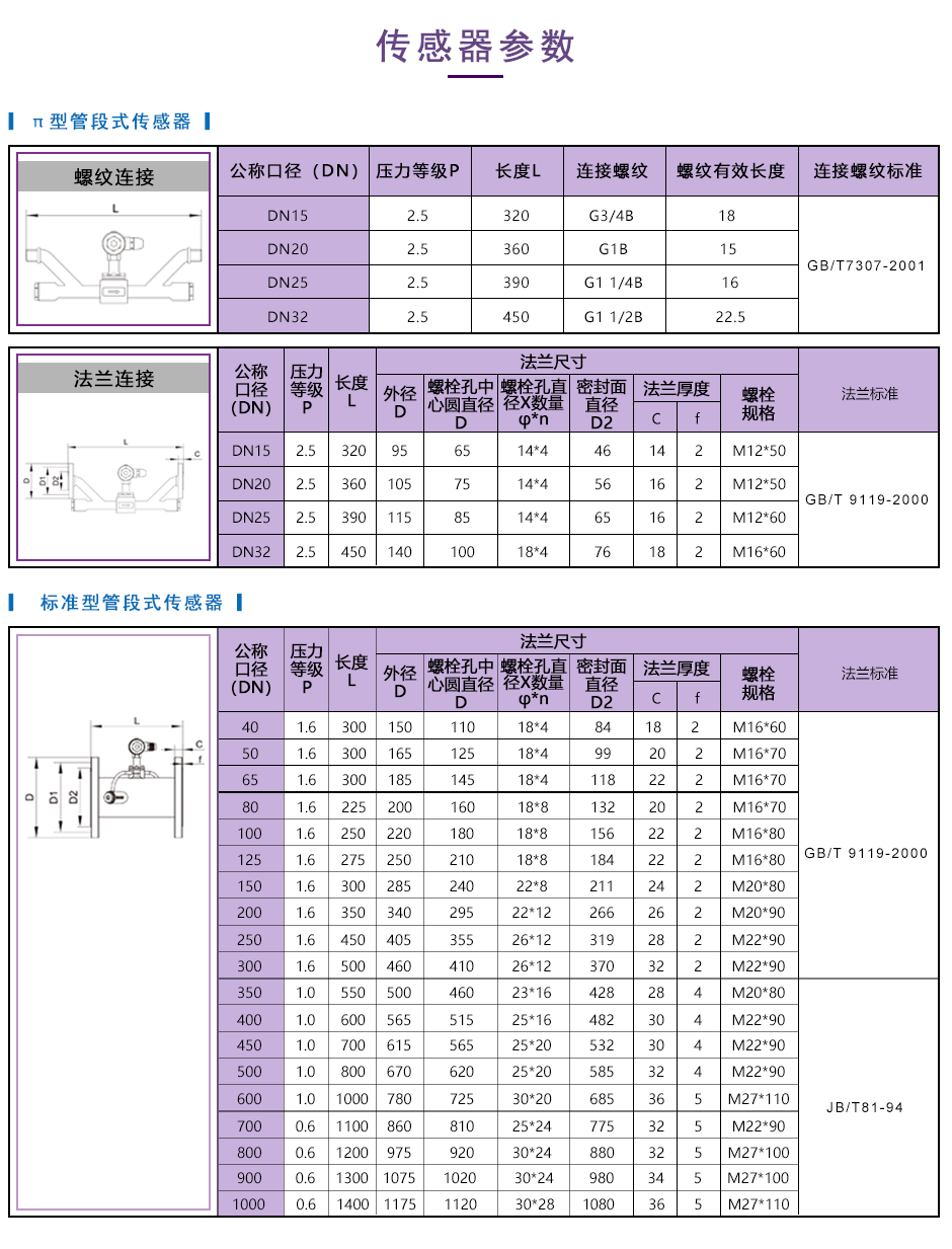 DN15-32采用π型管段式傳感器,DN40及以上采用標(biāo)準(zhǔn)型管段式傳感器。