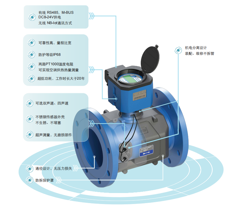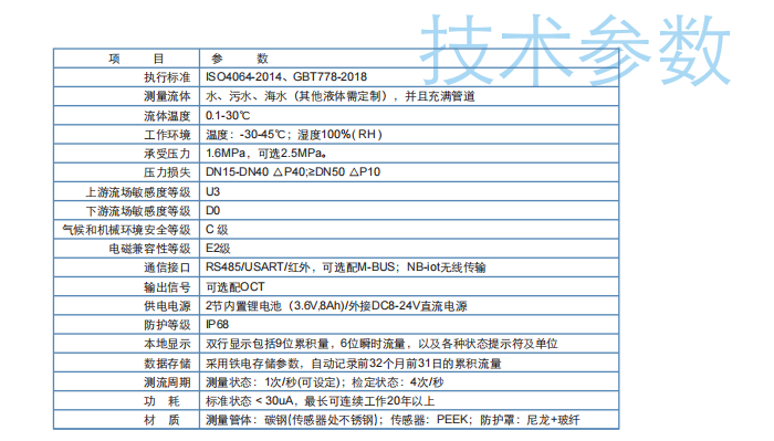 該系列超聲波水表具有高量程比,超低耗電,工作穩(wěn)定可靠等優(yōu)點(diǎn)。水表的每一個零部件都具有 IP68 防護(hù)等級,可運(yùn)用于各種惡劣的工作環(huán)境,廣泛應(yīng)用于城市供水,